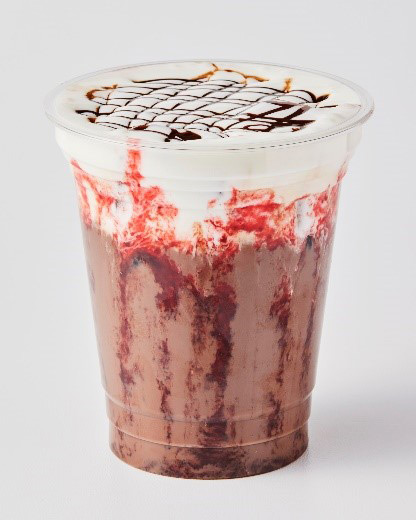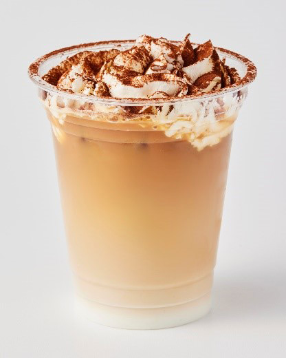 匠の髪の色をイメージしたベージュ色のカフェオレに白いホイップをのせ、VRゴーグルのカラーを表現しました。