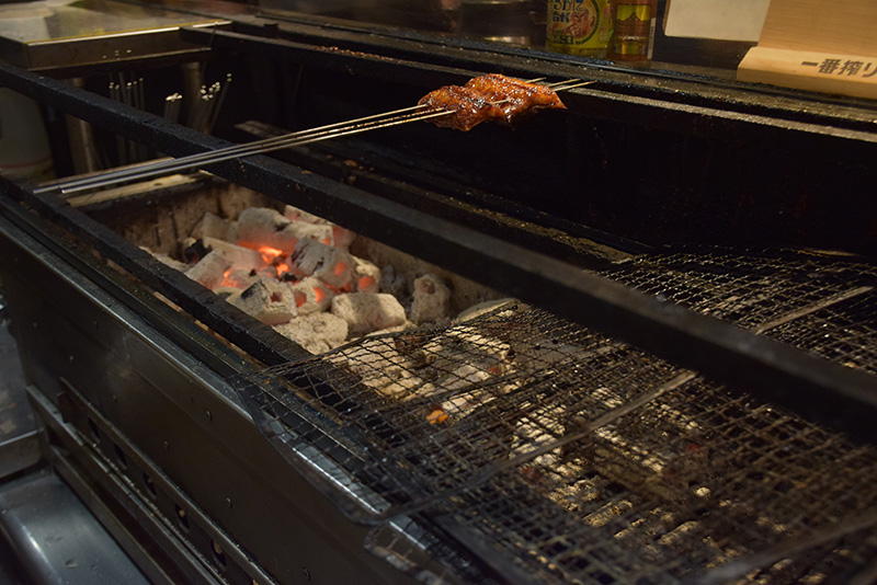 お店手前の席に座った彼女の目についたのは、炭がまんべんなく配された焼き台。そう、『新宿寅箱』では、炭火で焼いた鰻を食べることができるのだ。そんな鰻を口に運ぶことを想像しただけで、よだれが出てきてしまう。