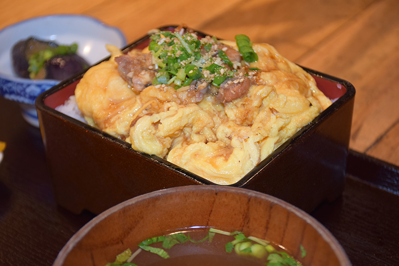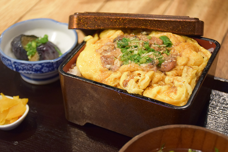ランチのメニューは並盛1,500円の「鰻重」ほか、1,000円以内で食べられる「焼き魚定食」や「鶏の唐揚げ定食」など。定食はどれもボリューミーながらリーズナブルに食べられると、常連さんからも評判らしい。今回は、聞き取り調査したときから気になっていた「鰻のオムライス」に、蒲焼きが入った「鰻のオムライス DX」を注文した。