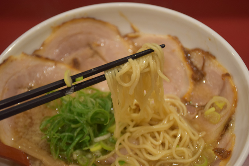 注文してから数分で着丼したのは、ネギ・メンマ・チャーシュー、そして麺と、シンプルな具材で構成された背脂系の醤油ラーメン。「入れれば入れるほど味が壊れちゃう可能性がある。もし好みがあれば、テーブルに置いてあるトッピングで味付けしてもらえれば」と店主は言葉にするが、シンプルゆえに味がごまかせない。具材の少なさは「ラーメン」の味そのものへの自信の表れと言えるだろう。