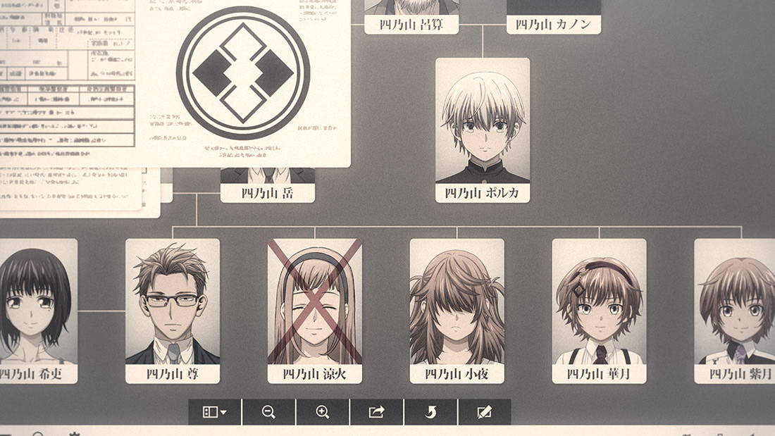 ミサキを伴い四乃山家を訪れたポルカは「四乃山尊」ら四乃山家の親族たちと出会う。